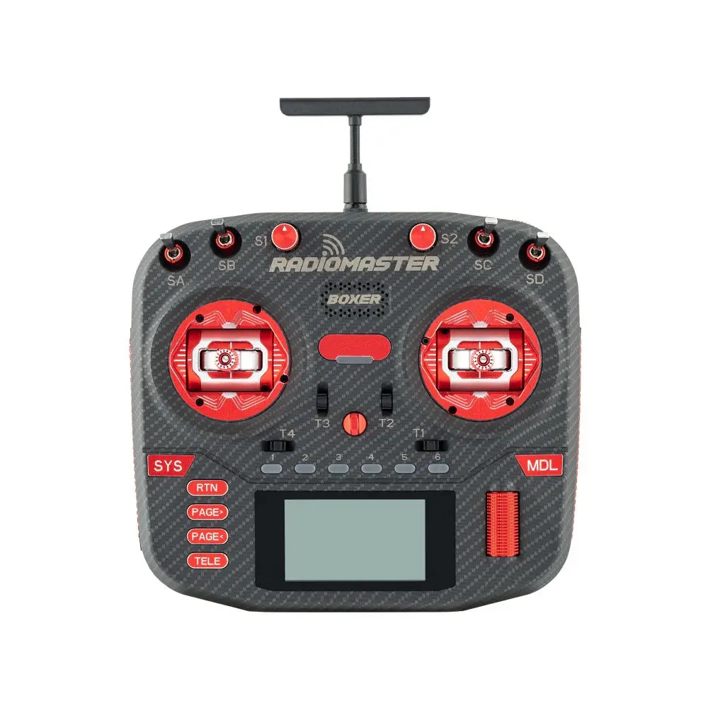 Introducing the Boxer Max Radio – a high-performance remote control with a sleek carbon fiber-patterned case. The Boxer Max comes standard with upgraded billet aluminum AG01 hall effect gimbals and CNC buttons and roller, ensuring a high-quality feel. The adjustable-length CNC metal folding handle and upgraded leather grips provide a comfortable grip for extended use. With all these features, the Boxer Max Radio is the perfect choice for those seeking superior performance, comfort, and a premium feel.