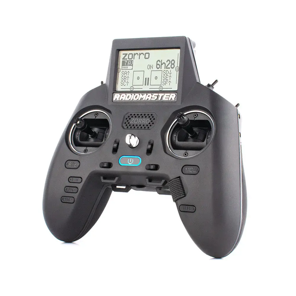 Featuring an ergonomic design, large bright LCD screen in the perfect viewing position, travel adjustable HALL sensor gimbals, a nano size external RF module bay, built-in USB-C Charging, USB-C Data port for updating and playing simulators, rear and top assignable push buttons, scroll wheels, RadioMasters 7 button menu navigation system, headphone audio output, external power source input and a host of RF options the RadioMaster Zorro is set to change the game once again.