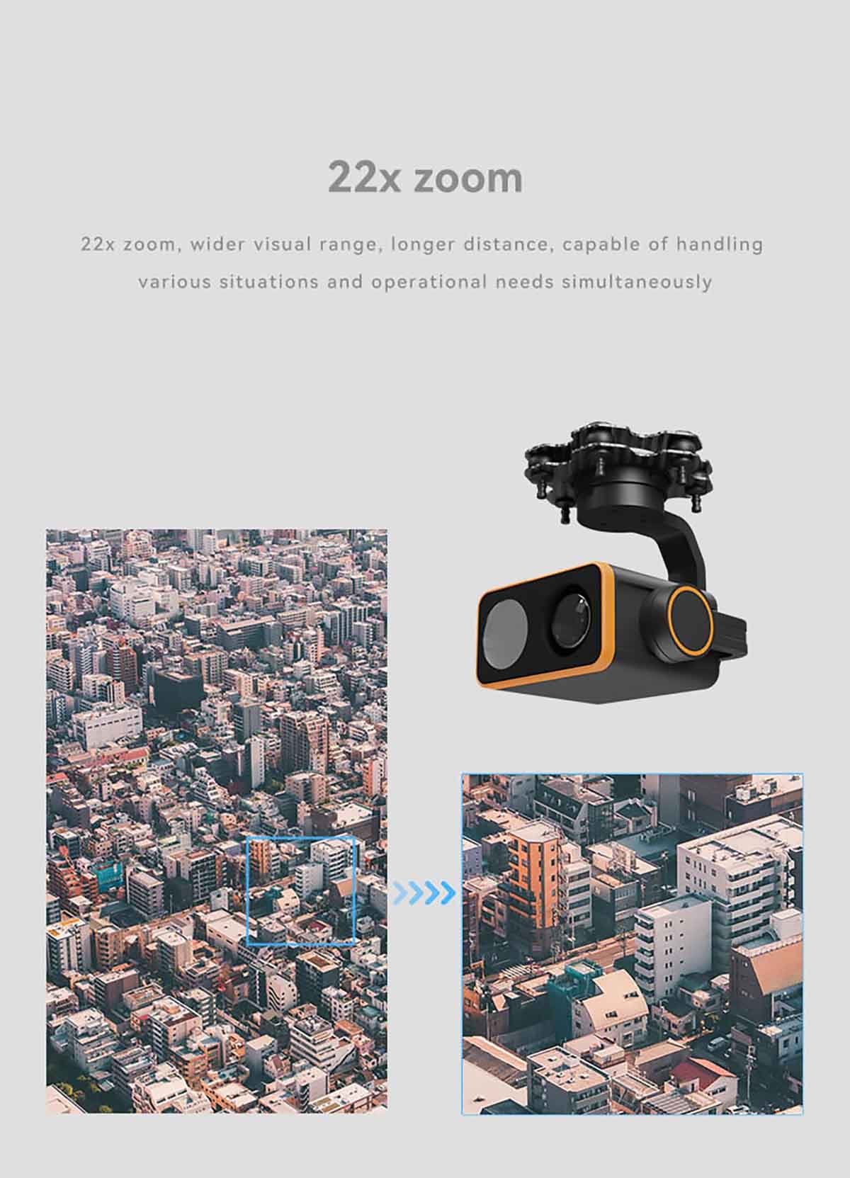 It is 22x zoom, wider visual range, longer distance, which is capable of handling various situations and operational needs simultaneously.